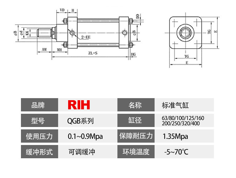 QGB標(biāo)準(zhǔn)氣缸_國(guó)產(chǎn)氣缸_大缸徑重型氣缸