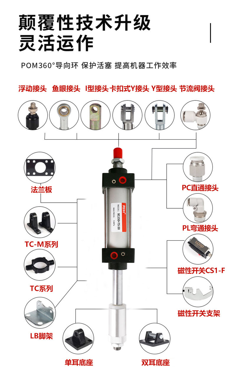 3、多種氣缸安裝附件可供選擇,靈活多變。