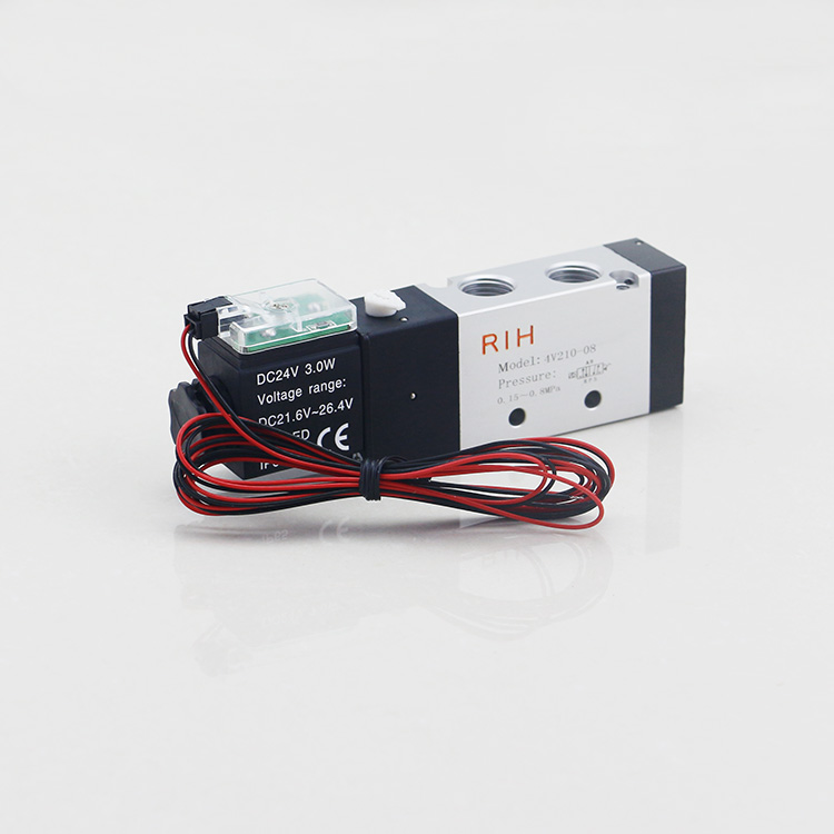 4V210-08為二位五通電磁閥,單線圈控制: