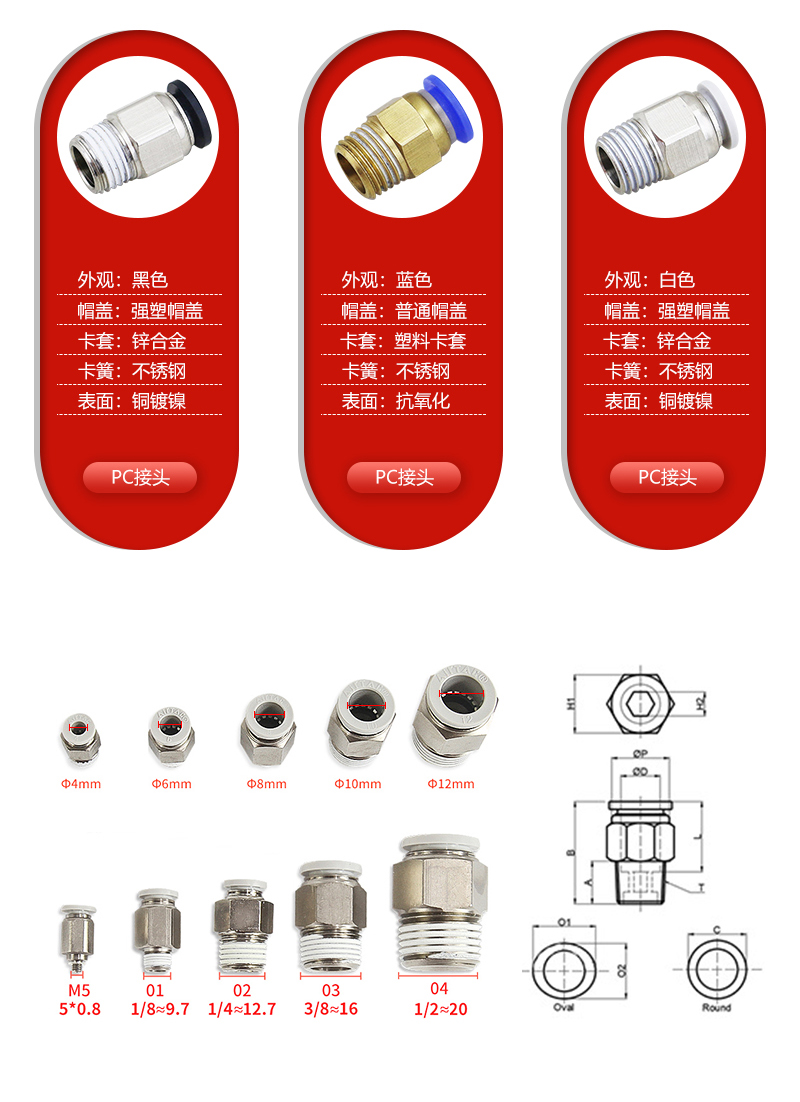 1:圓螺紋直通型結(jié)構(gòu),外觀小巧,節(jié)省安裝空間,性?xún)r(jià)比高;2:螺紋部分涂有密封劑,確保螺紋連接部分無(wú)泄漏;3:鍍鎳的筒體可以防腐蝕和污染,應(yīng)用范圍更廣;4:塑料接口部分多種顏色可選,方便你調(diào)整配管需求。