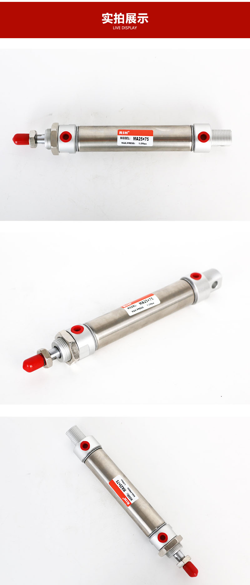 MA不銹鋼迷你氣缸活塞采用異性雙向密封結構,尺寸緊湊,有儲油功能。前后蓋帶固定式防撞墊,可減少氣缸的換向沖擊,多種后蓋形式,使氣缸安裝方便。不銹鋼迷你氣缸前后蓋與不銹鋼缸體采用鉚合滾包結構,鏈接可靠。缸體采用高精度不銹鋼管,強度高,抗腐蝕。多種規格的氣缸及氣缸安裝附件可供客戶選擇使用。