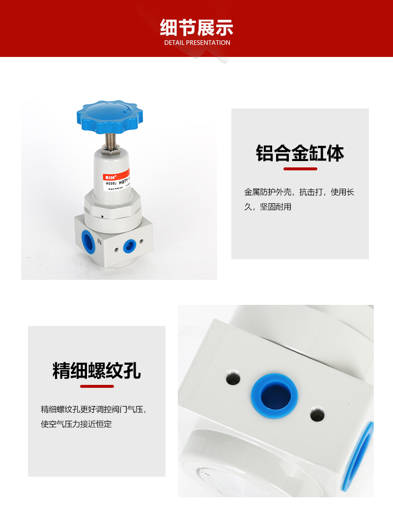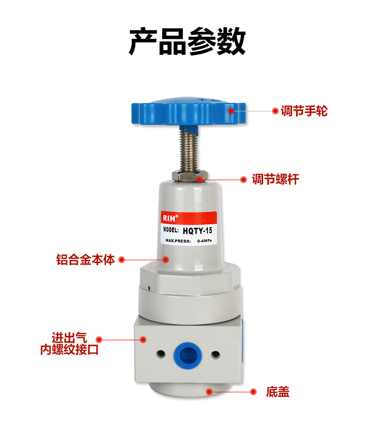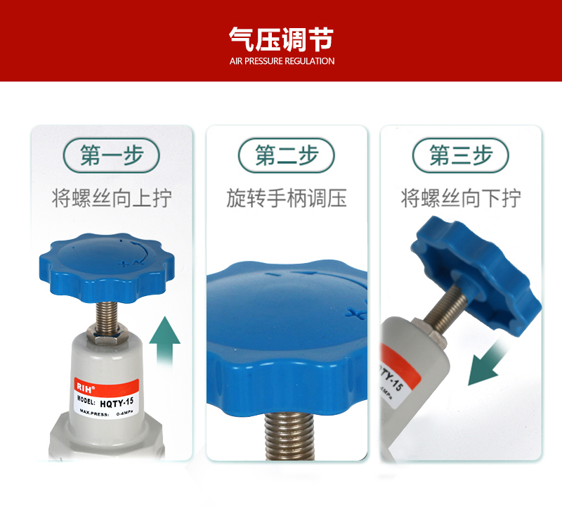 減壓閥是氣動調(diào)節(jié)閥的一個必備配件,主要作用是將氣源的壓力減壓并穩(wěn)定到一個定值,以便于調(diào)節(jié)閥能夠獲得穩(wěn)定的氣源動力用于調(diào)節(jié)控制。HQTY高壓減壓閥適合0.1~4.0Mpa環(huán)境下使用,外表緊湊堅固。1、為了操作和維護(hù)方便,該閥一般直立安裝在水平管道上。2、安裝時應(yīng)注意使管路中介質(zhì)的流向與閥休上所示箭頭的方向一致。瑞亨氣動提供最全面HQTY高壓減壓閥選型報價及銷售。