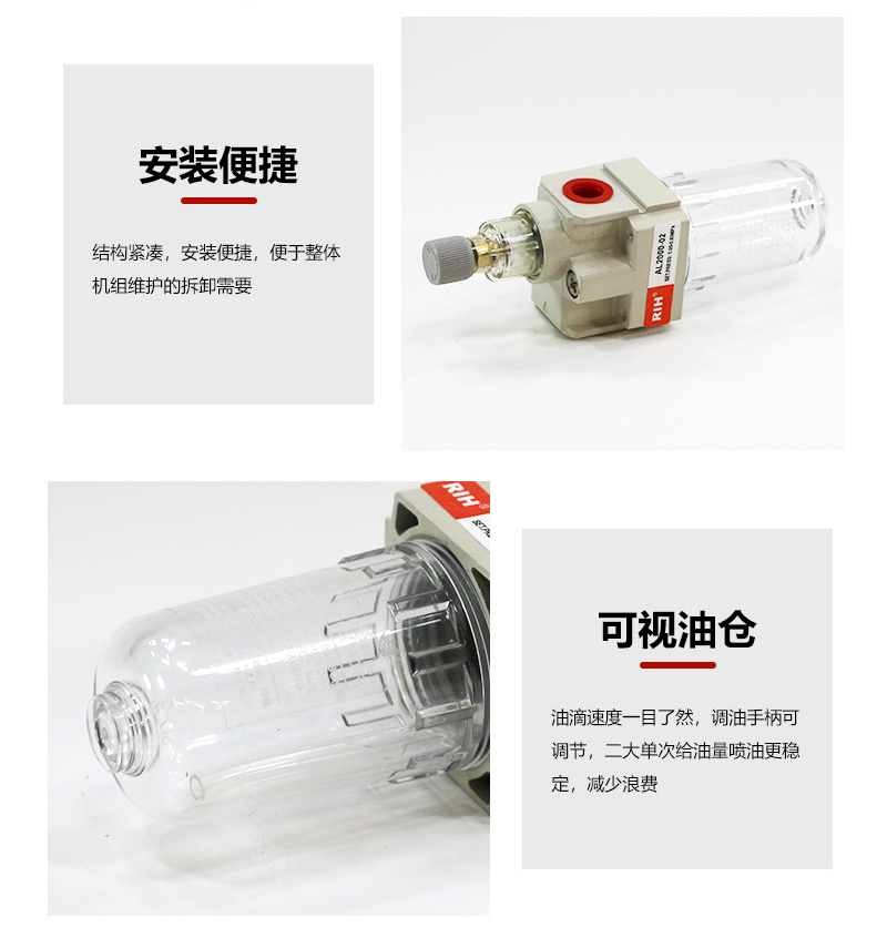 油霧器是一種特殊的注油裝置,它將潤滑油進(jìn)行霧化,并注入空氣流中,隨壓縮空氣流入需要潤滑的部位,達(dá)到潤滑的目的,比如氣缸內(nèi)活塞桿的潤滑,氣批的轉(zhuǎn)動潤滑等。瑞亨所生產(chǎn)的AL2000能夠完全代替SMC油霧器,提供最全面的油霧器給油器型號選型、價格銷售服務(wù)。